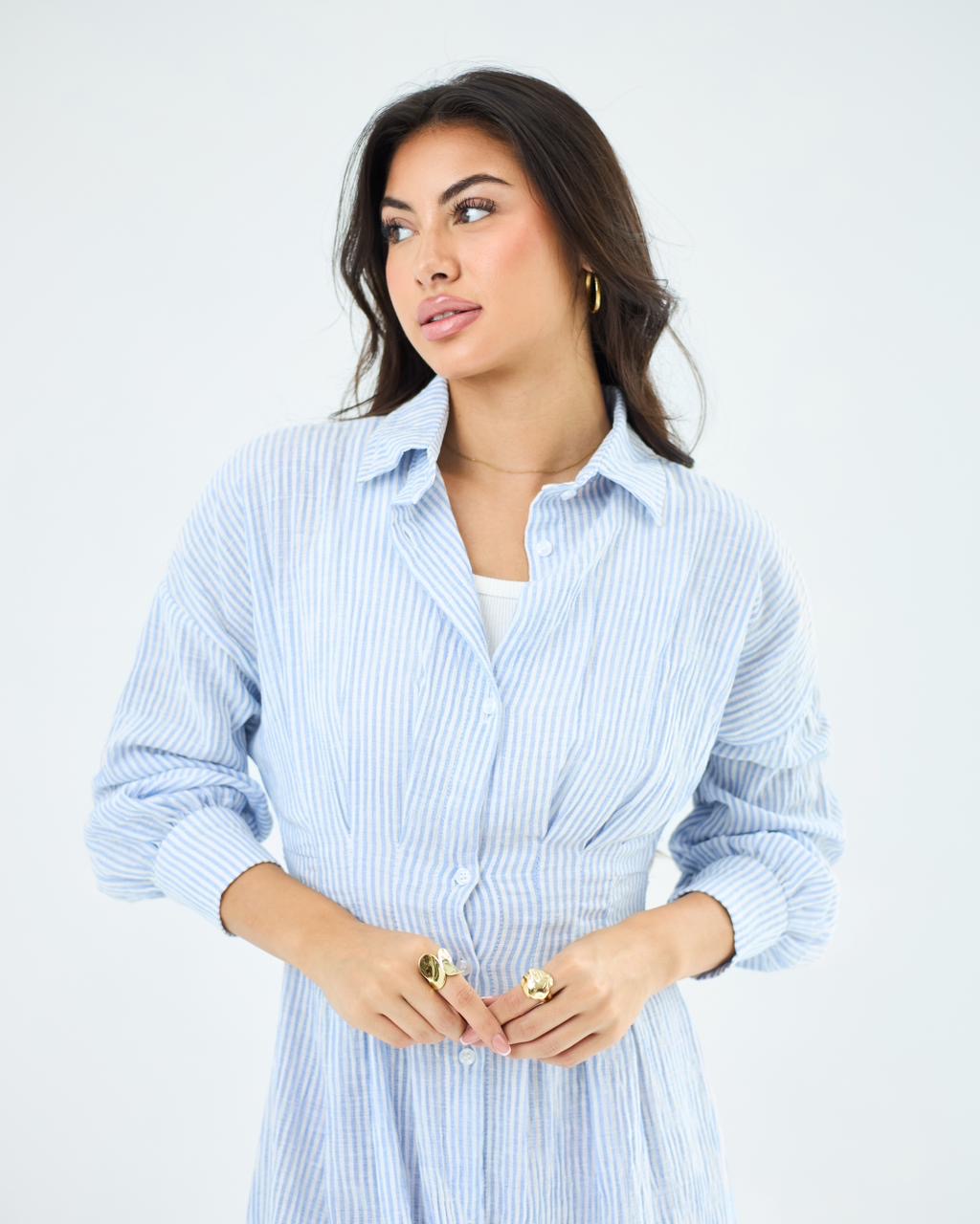 Hannah stripped linen dress available in 2 sizes ( size 1 fits till 65 kilo - size 2 fits till 85 kilo )